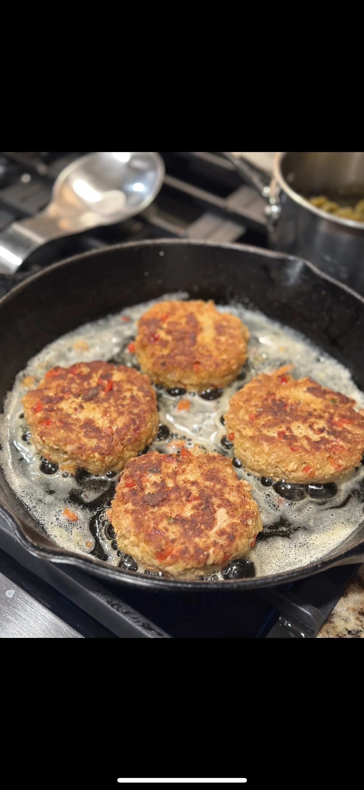 Fry on medium heat in a cast iron pan preferably, but any frying pan will work. Use any oil of your choice, but remember olive oil will burn easily. Add a little butter to the oil mixture for extra flavor.